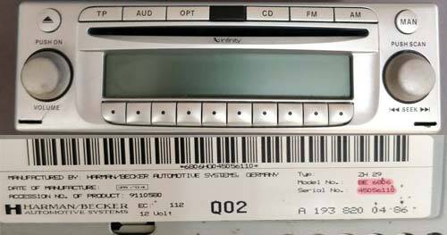 You'll need to remove the radio to get access to the serial number and model number, it will have 4 numbers followed on from BE (6806) and the 8 digit serial is underneath. For example, 45056110.